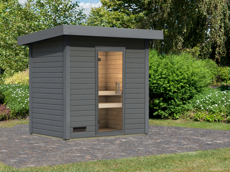 Karibu Saunahaus Caapi 2, terragrau - ohne Ofen - inkl. Klarglastür und Fußboden