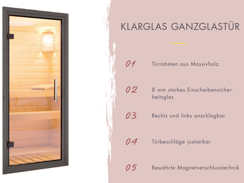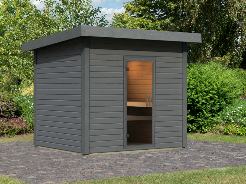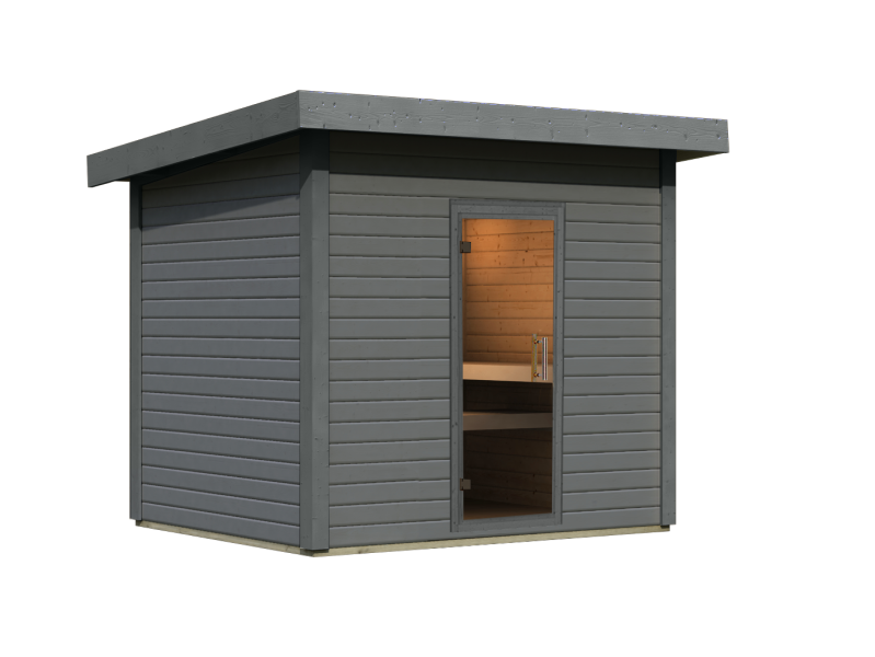 Karibu Saunahaus Caapi 4, terragrau, ohne Ofen, inkl. Klarglastür und Fußboden